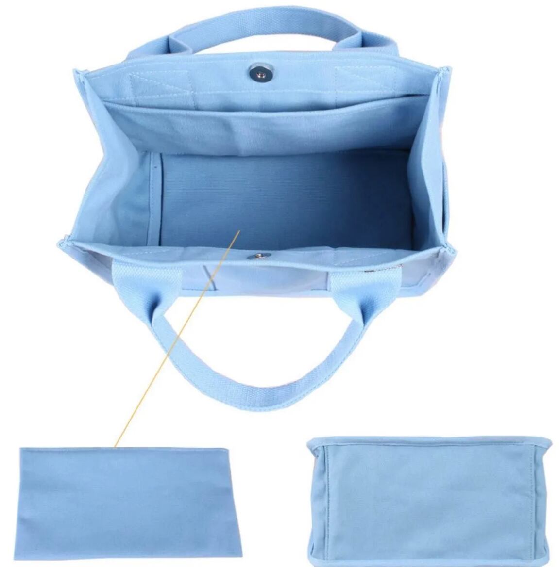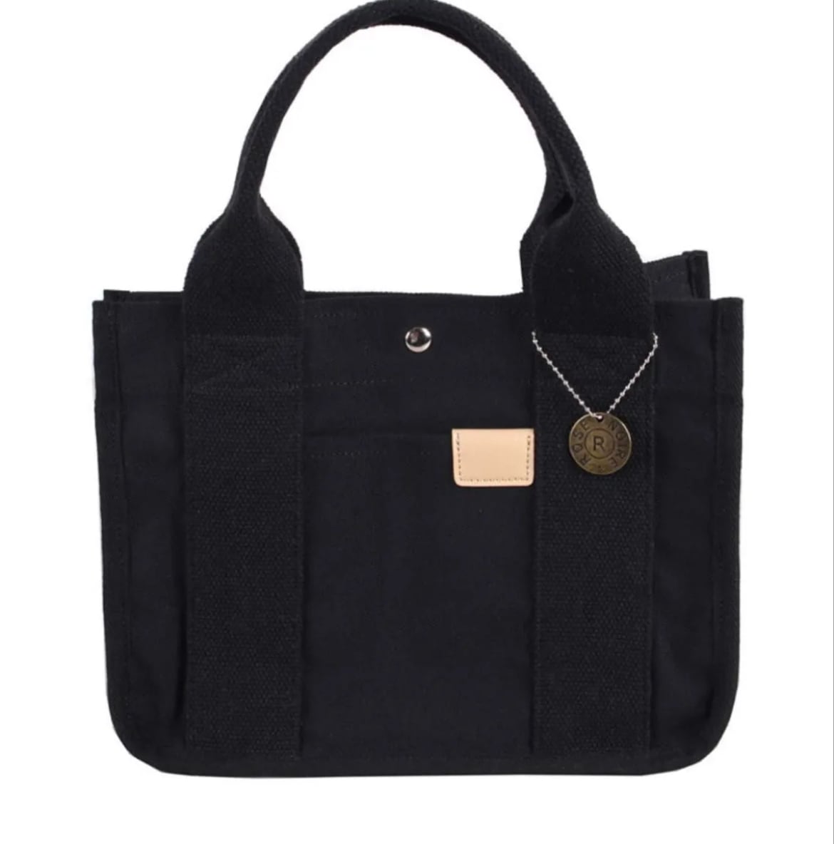 レディース帆布ミニトートバッグ|2室仕切り付き|丈夫で軽量|ランチ・タブレット収納可|ゴールドチャーム付き ブラック