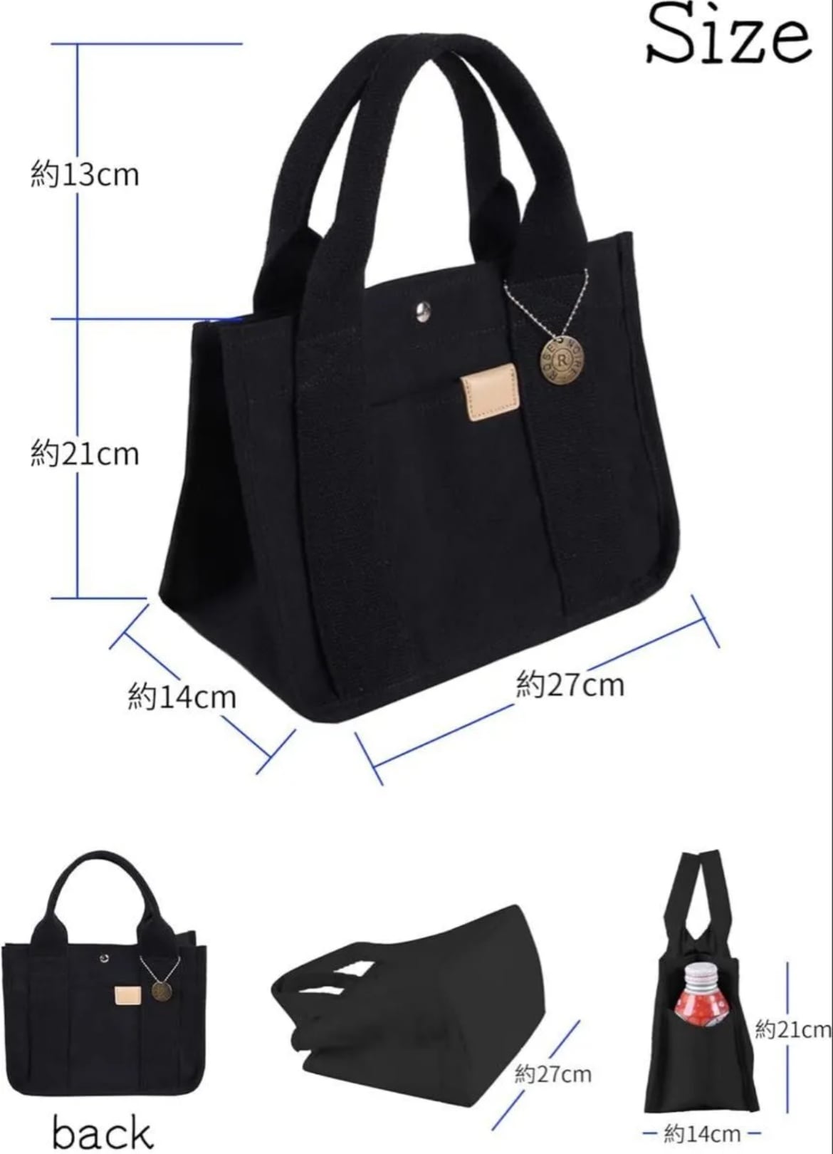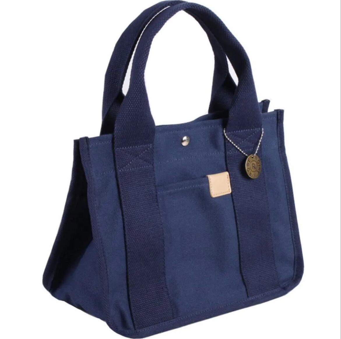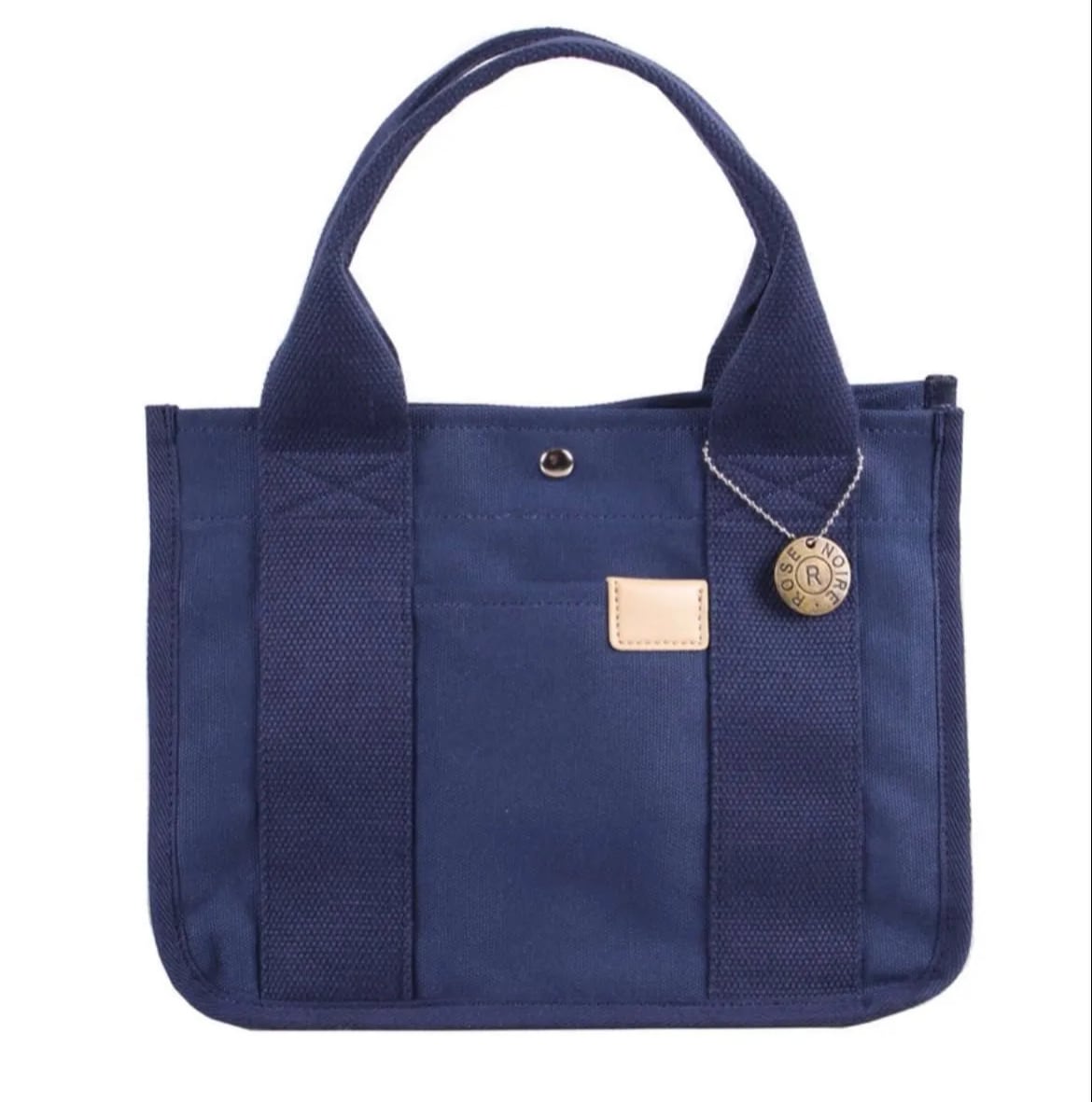 レディース帆布ミニトートバッグ|2室仕切り付き|丈夫で軽量|ランチ・タブレット収納可|ゴールドチャーム付き ネイビー