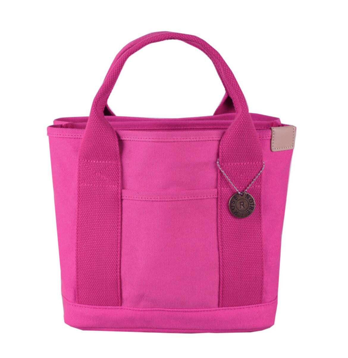 レディース 帆布トートバッグ 小さめ ミニ 3仕切り ポケット付き ローズレッド カジュアル おしゃれ 通勤 通学 デイリーバッグ