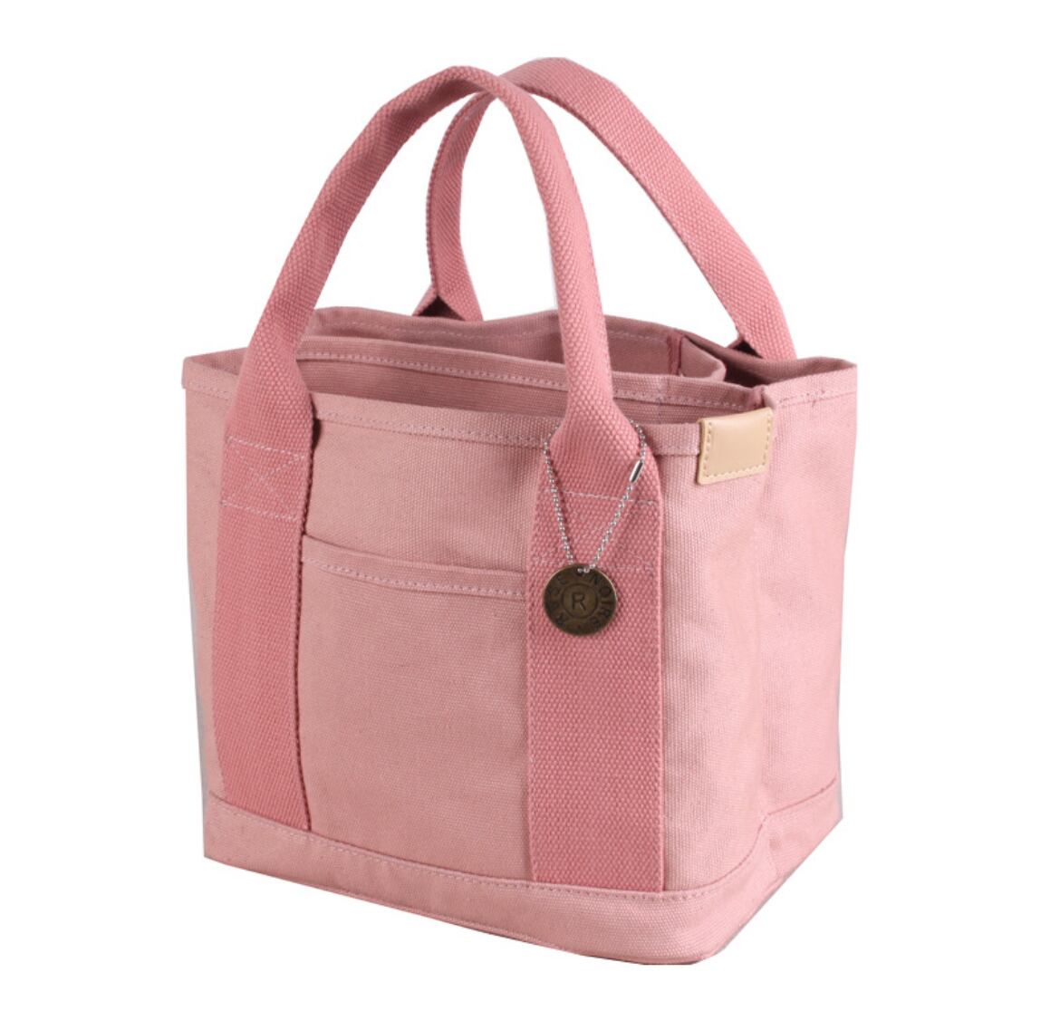 レディース 帆布トートバッグ 小さめ ミニ 3仕切り ポケット付き ローズレッド カジュアル おしゃれ 通勤 通学 デイリーバッグ ピンク