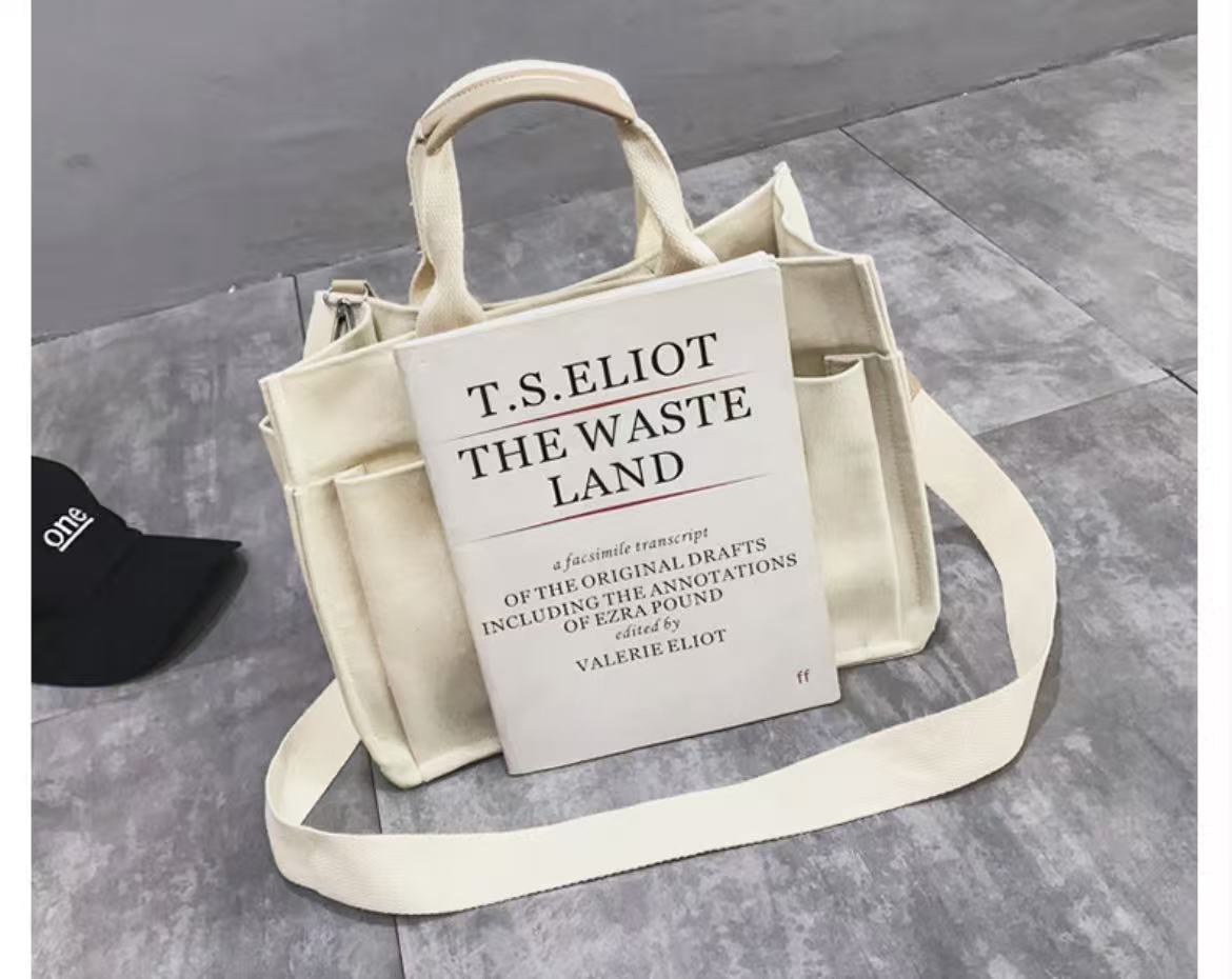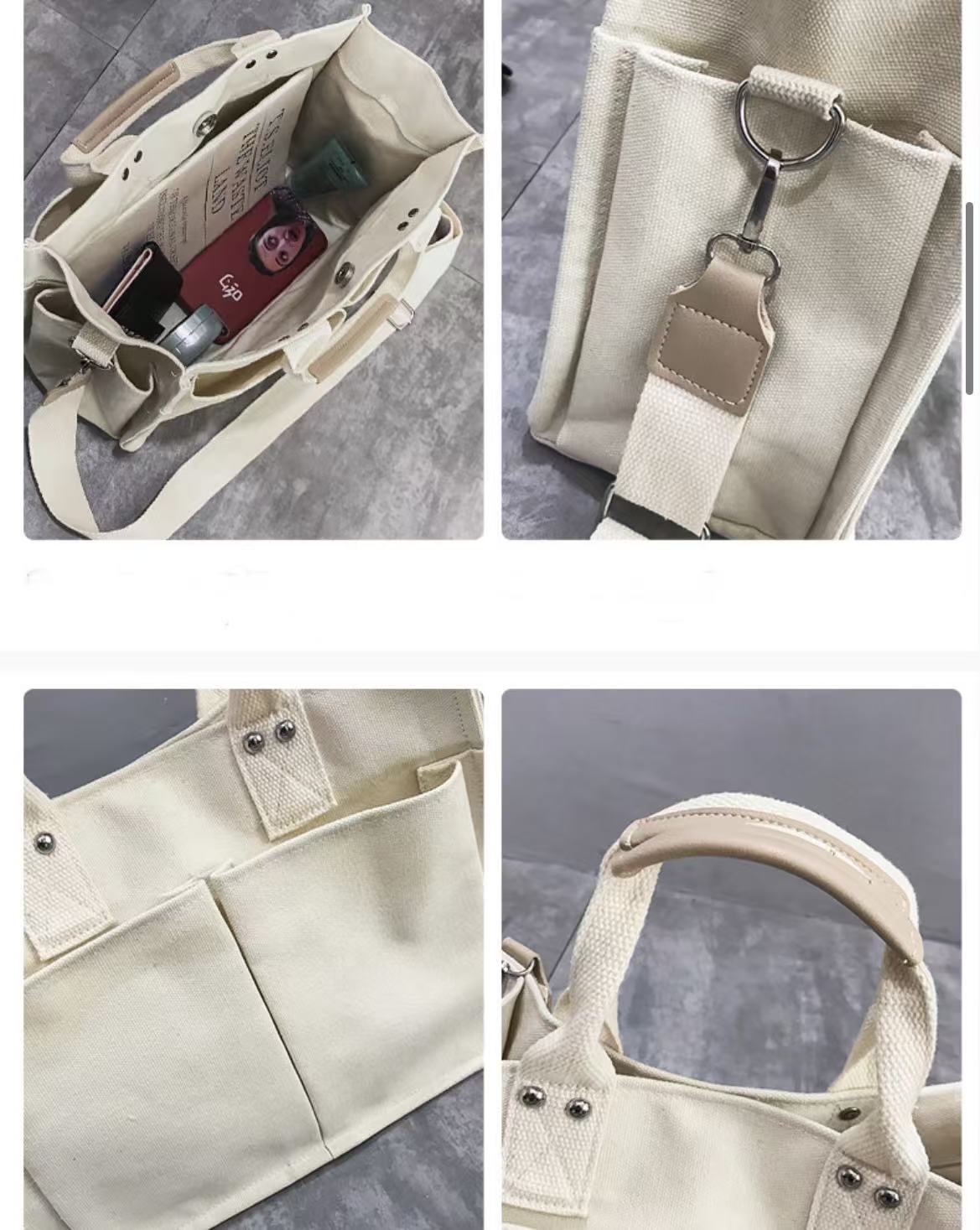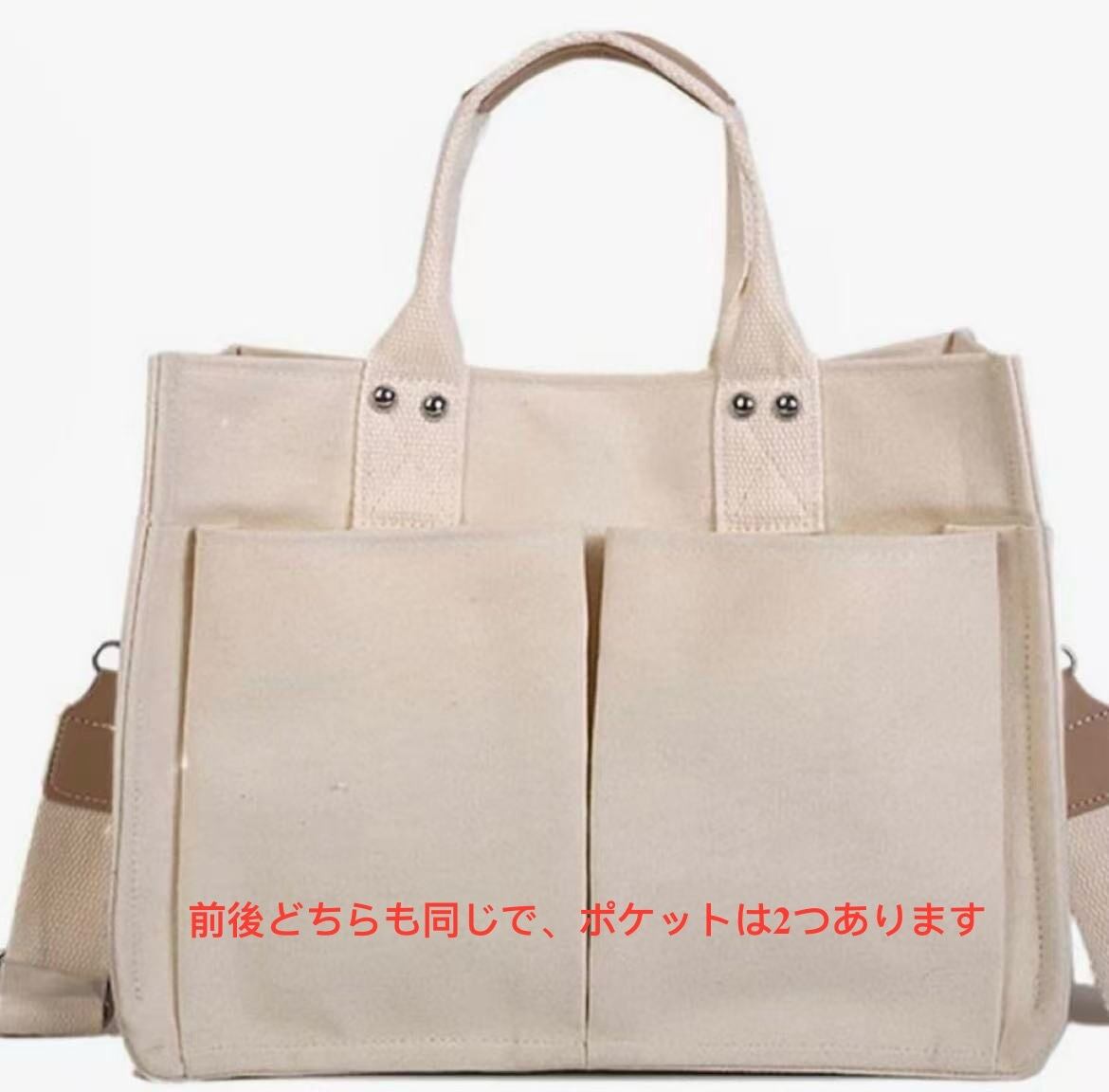 帆布大容量托特包 2way手提斜挎 多口袋マザーズバッグ レディース 通学 通勤 黒