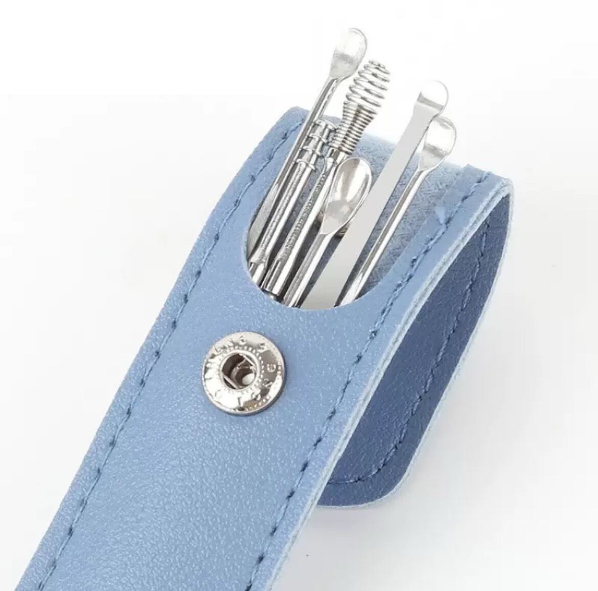 耳かき 6点セット ステンレス製 イヤークリーナー 携帯ケース付き 耳掃除 スクリュー型・スプーン型・コイル型 水洗いOK 衛生的 軽量コンパクト ネイビー