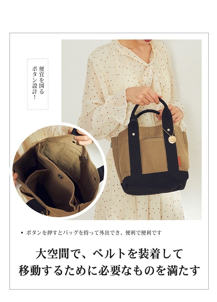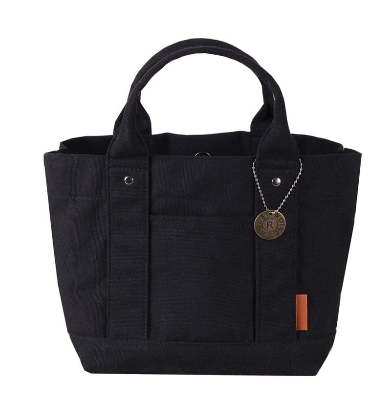 帆布ミニトートバッグ 大容量 多ポケット 仕切り付き 取り外し可能 使いやすいキャンバスバッグ レディース 通勤 通学 ブラック