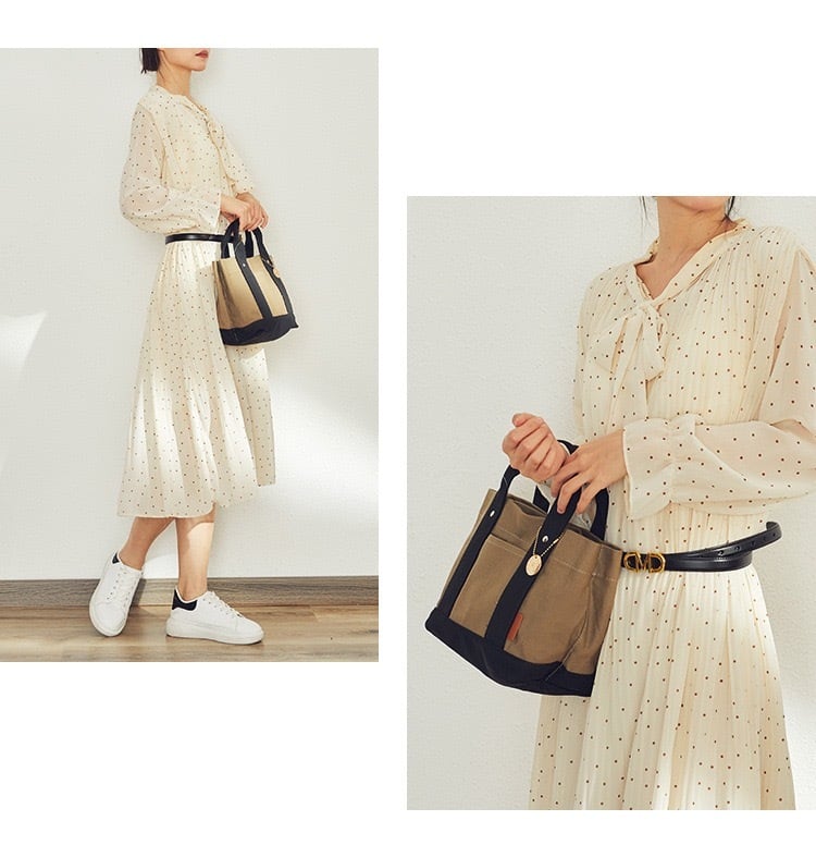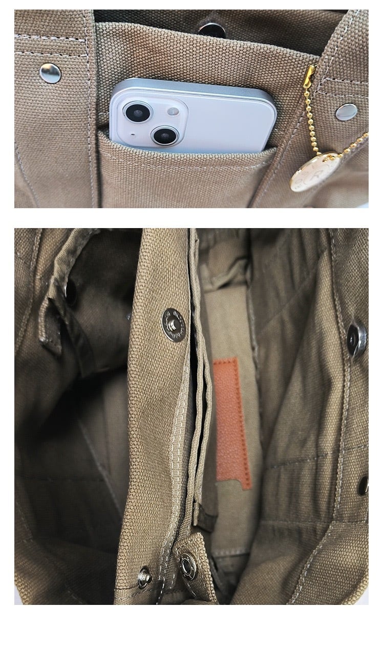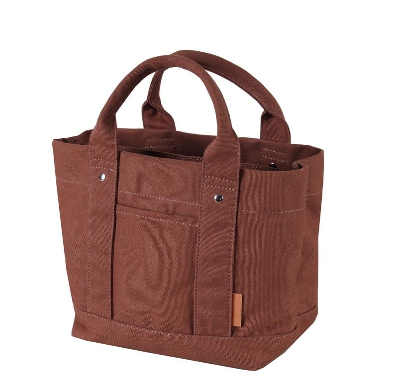 帆布ミニトートバッグ 大容量 多ポケット 仕切り付き 取り外し可能 使いやすいキャンバスバッグ レディース 通勤 ブラウン