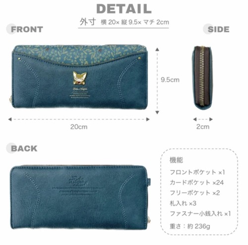 ベベダヤン【ミモザポケット】ラウンドファスナー長財布|猫好きに人気